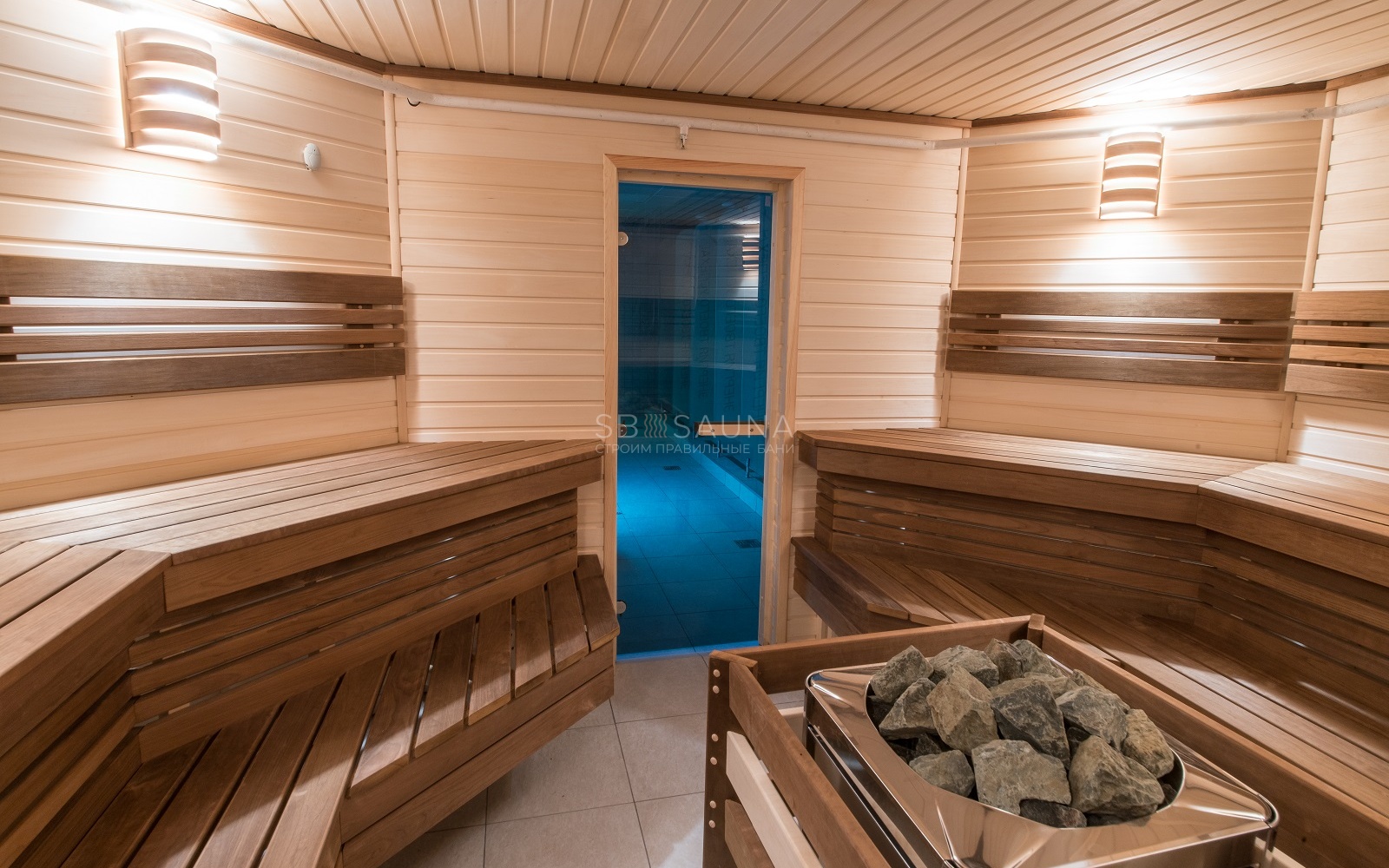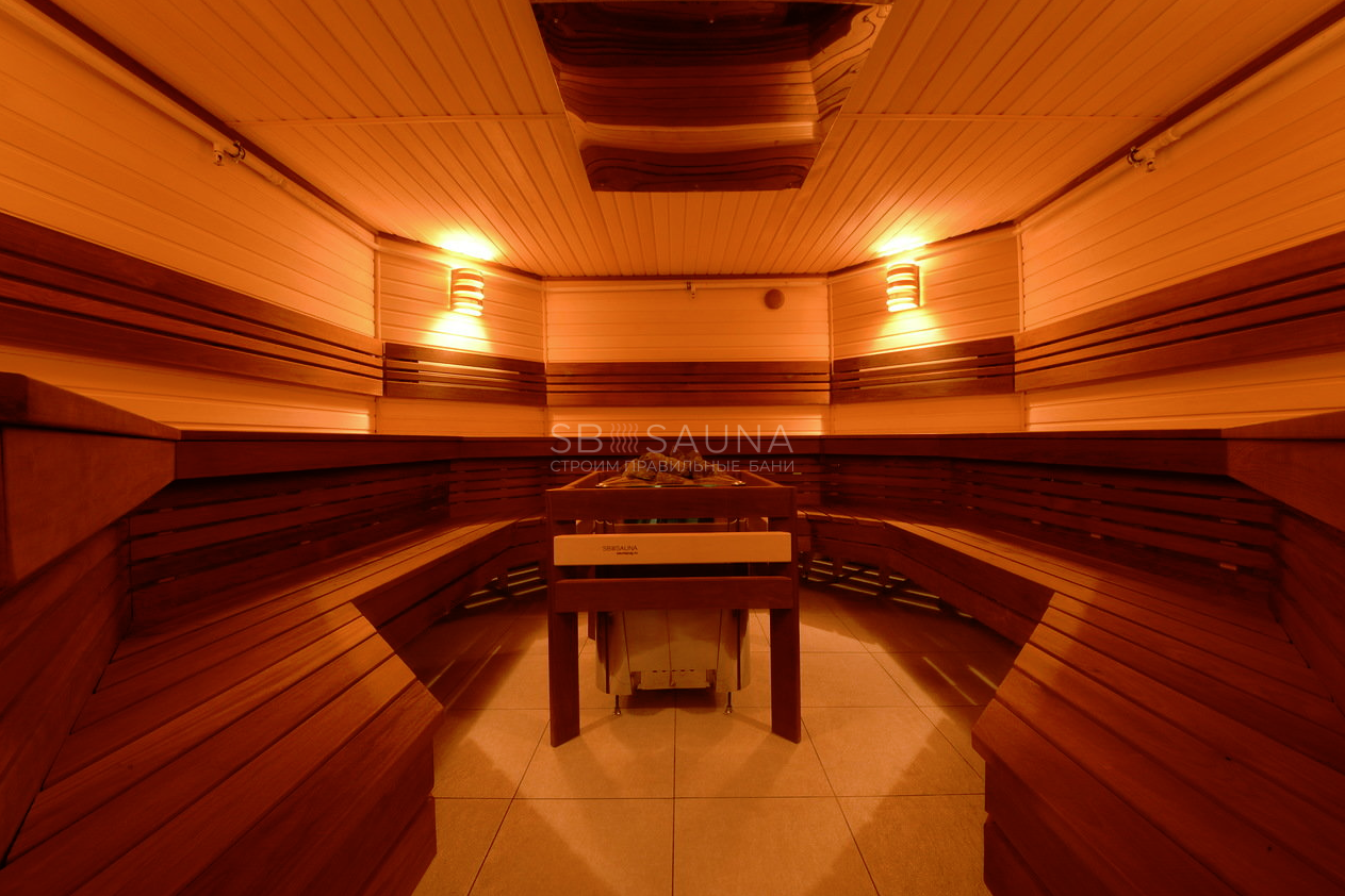 Мы остановились на вагонке из кавказской липе, и термоосине. Термическая обработка делает осину более плотной, снижается уровень впитывания влаги в дерево. Такое дерево выдержит постоянное пребывание в влажной среде, не разбухнет. Так как сауна используется не для домашнего пользования, необходимо было учесть большую ежедневную нагрузку.